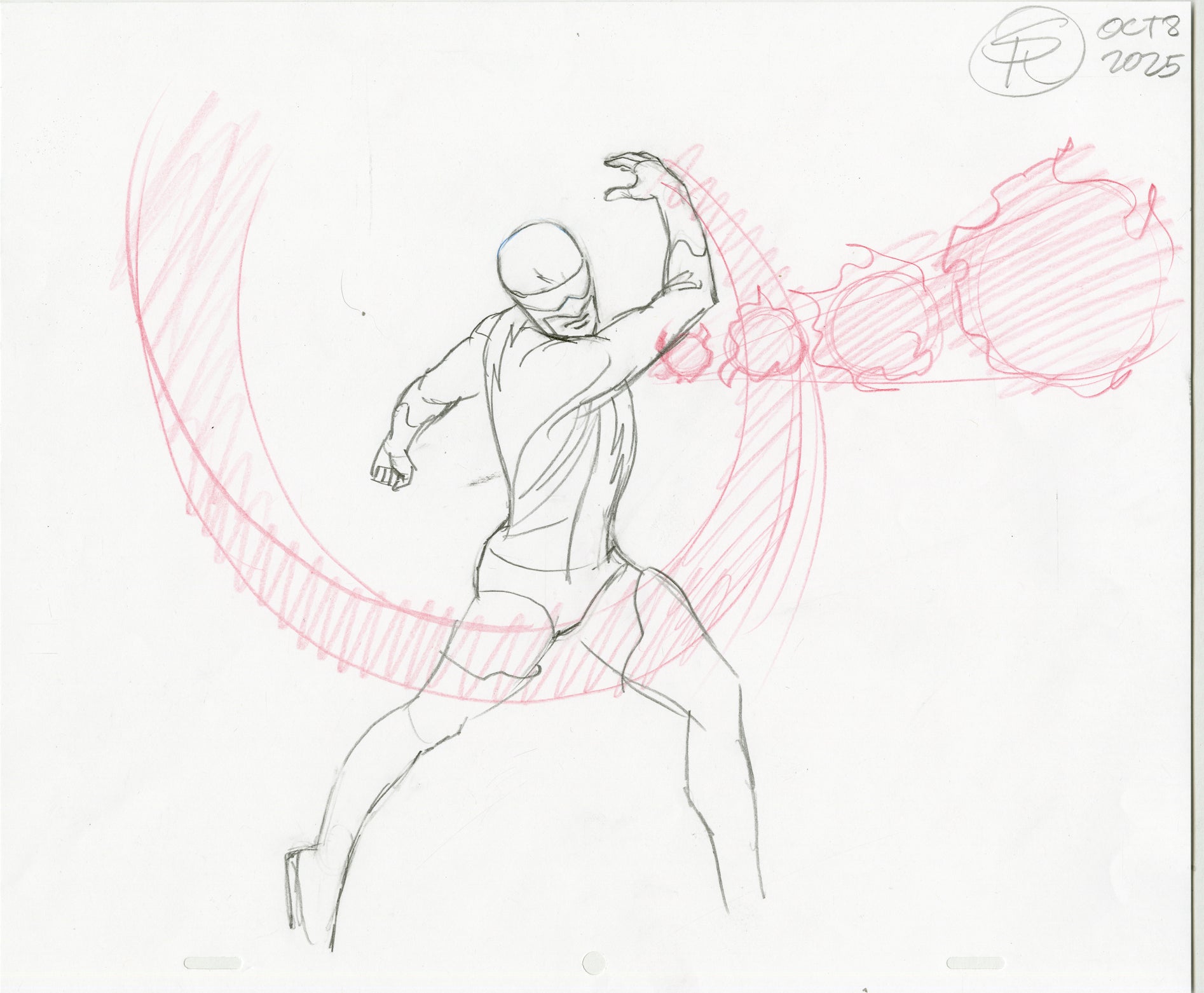 This drawing is a zen like image; it appears simple but contains a wealth of information beneath the surface. Steve Rude has internalized forms moving through space and working in unison to create depth. He prioritizes gesture, proportion and basic forms which is why his art is consistently superb and rewards close study for students.